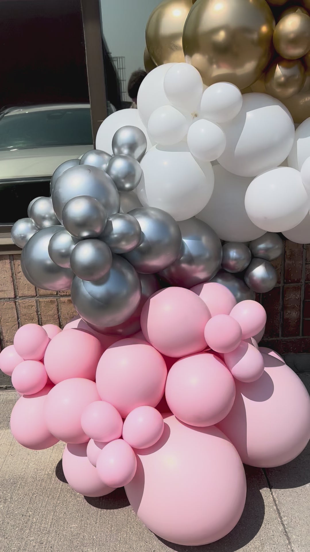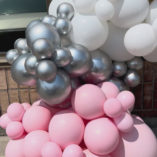 Welcome your clients in style with a beautiful 8 ft balloon garland — perfect for decorating your salon, shop, or office entrance. This garland combines four colours: pink, gold, white, and silver, but can be fully customised to match your brand or theme. Eye-catching exterior décor helps attract attention and create a positive first impression for your business.
