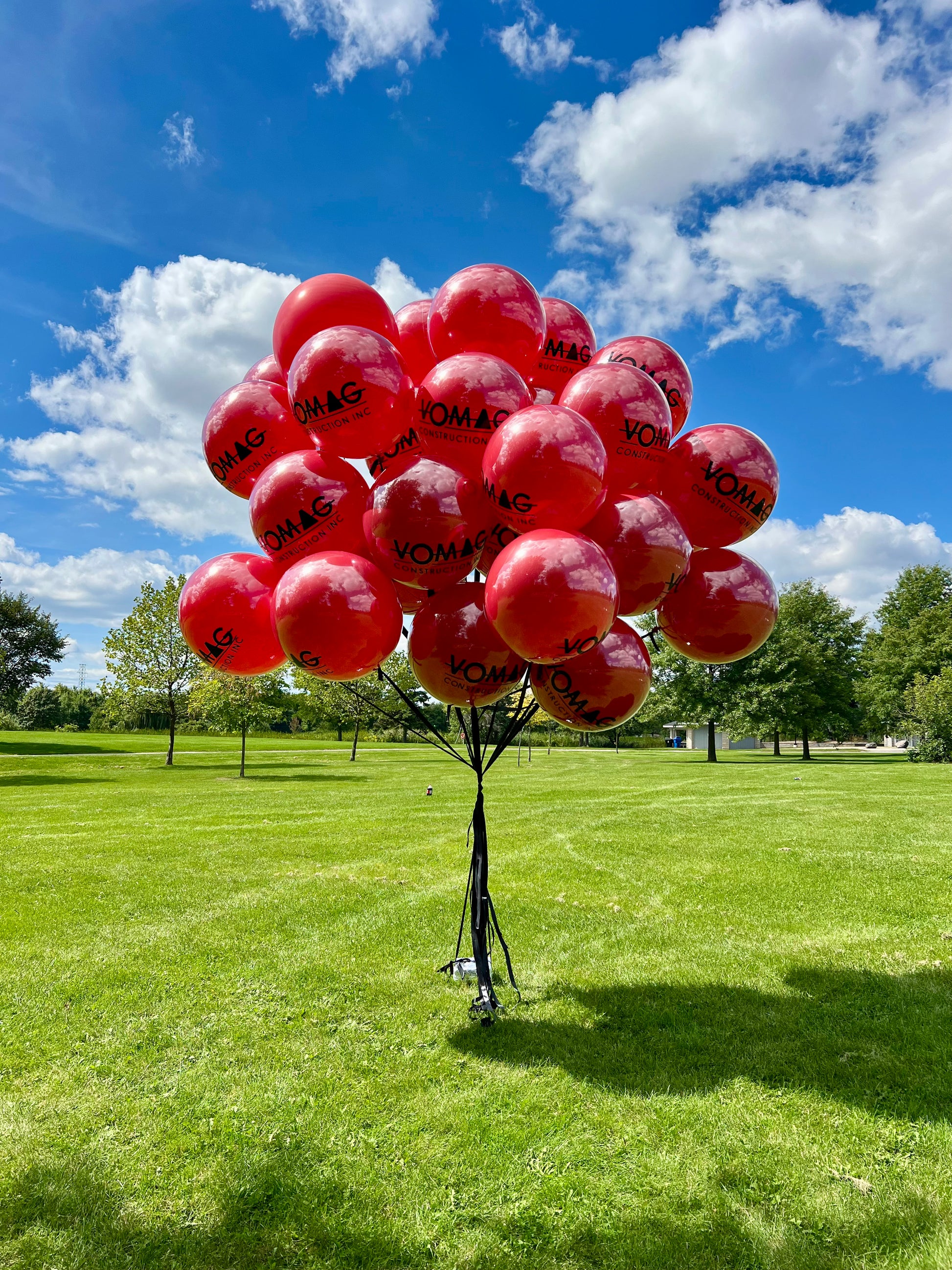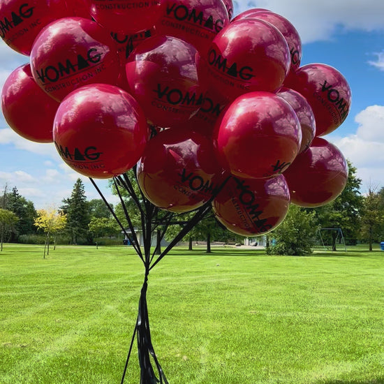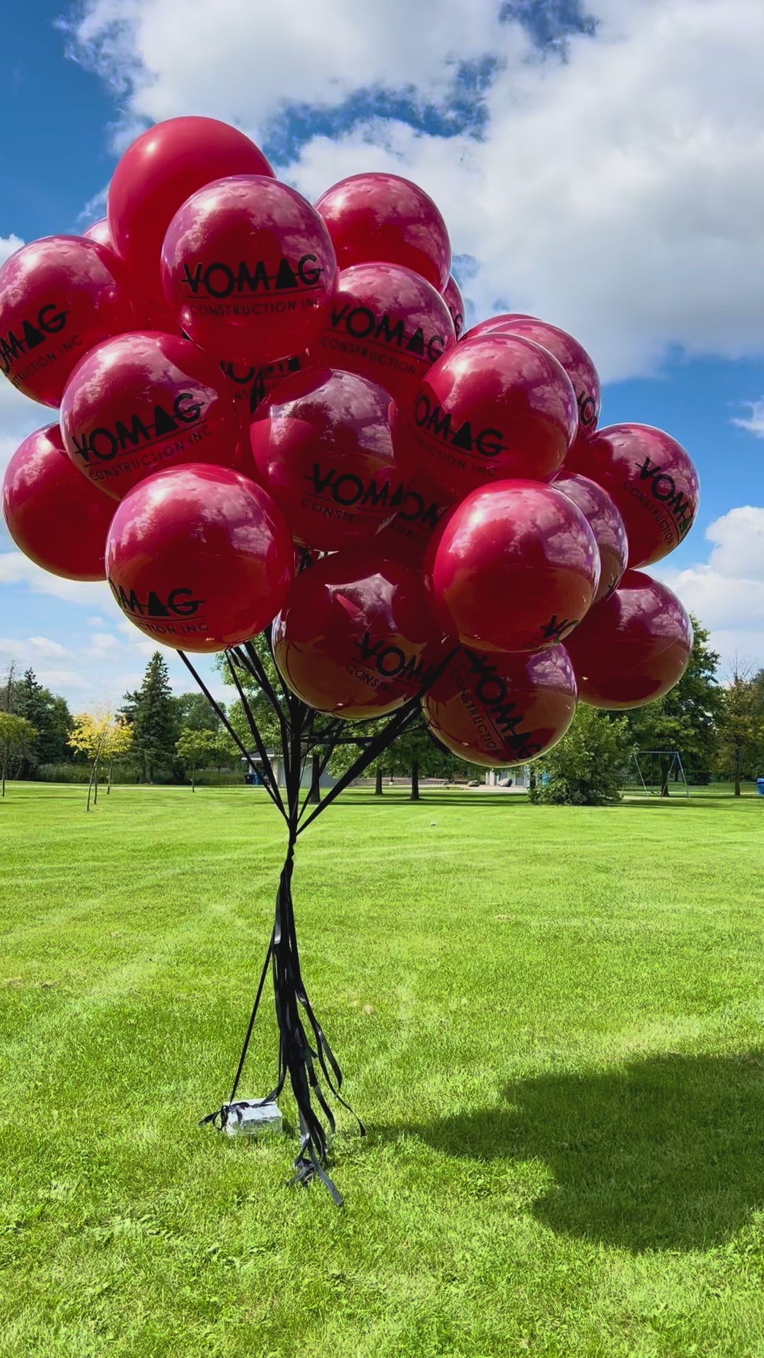 36” giant balloon with clear glass effect and custom logo. Perfect for storefronts, brand launches or corporate events. Includes vinyl branding, helium, matching ribbon and weight. Balloon colour and design can be customized to fit your brand style. Price listed is per balloon.
