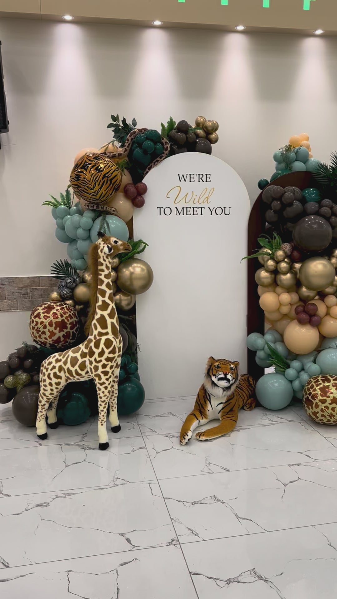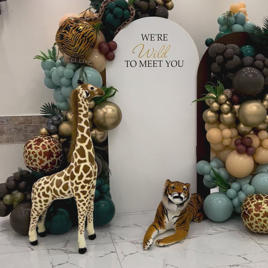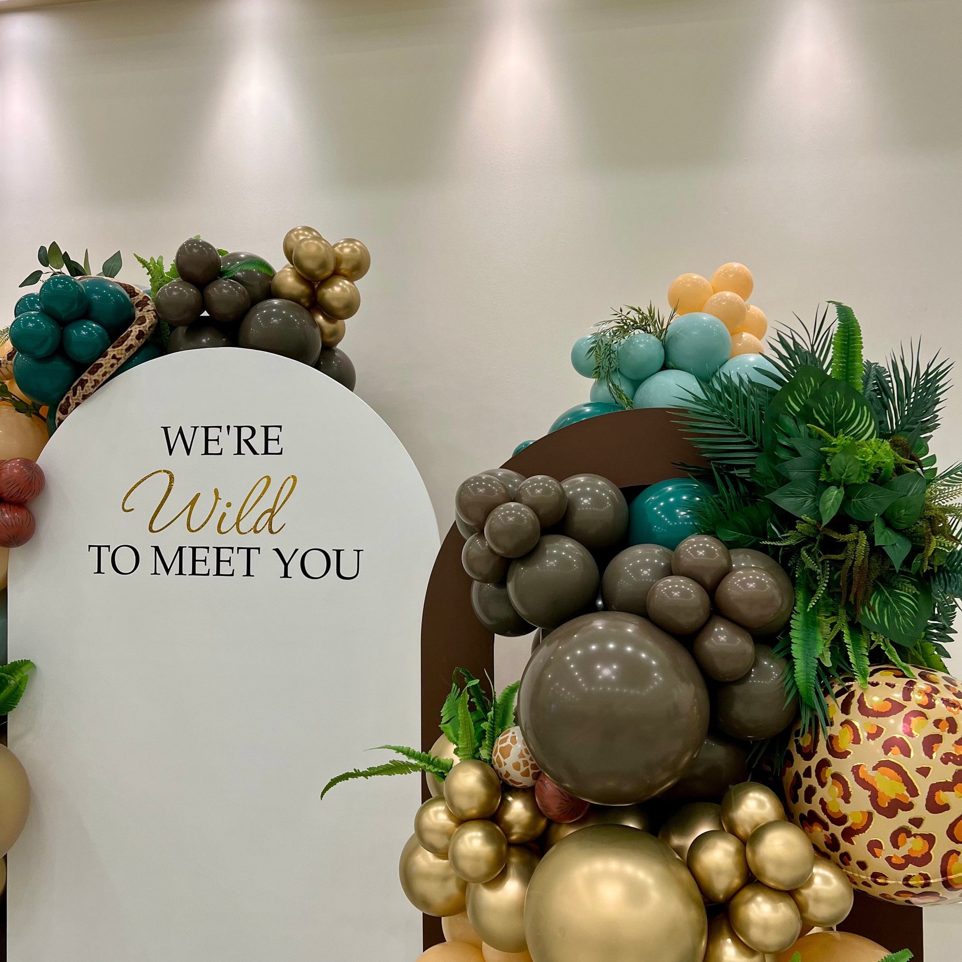 - Two large balloon garlands in safari-inspired tones