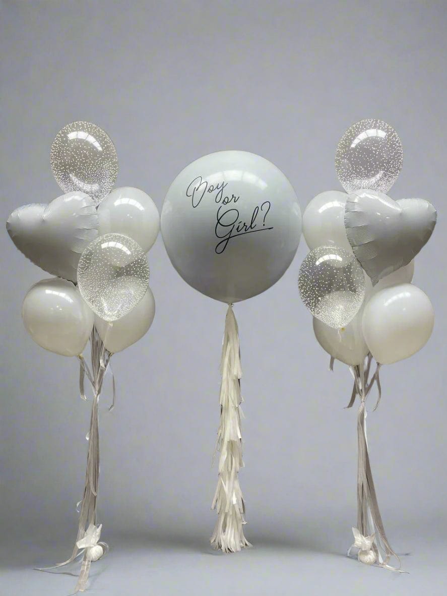 • Large gender reveal balloon (filled with pink or blue confetti)